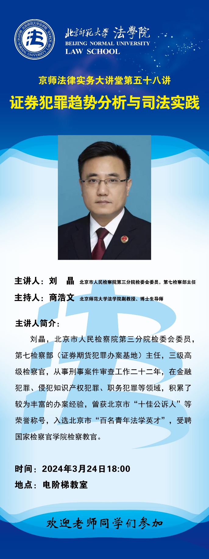 Lecture 58 of the BNU Legal Practice Lecture Series - Analysis of Securities Crime Trends and Judicial Practice