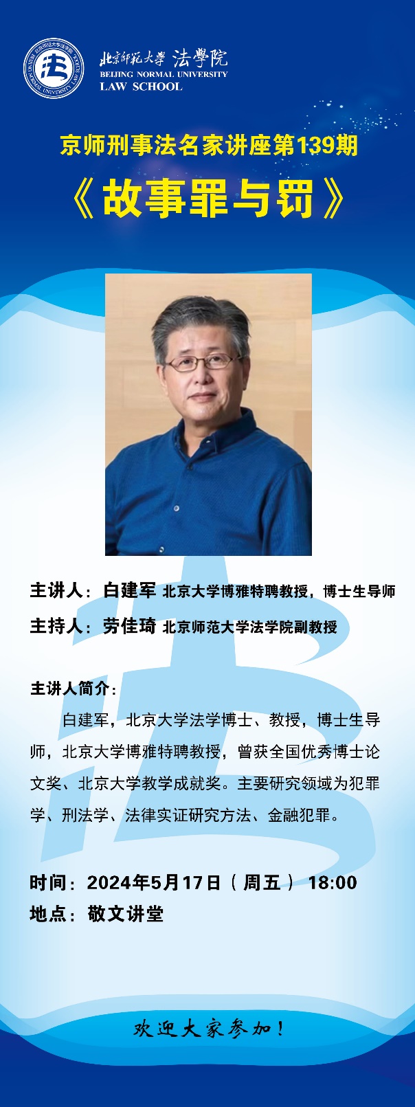 Lecture Preview | The 139th Session of the BNU Distinguished Criminal Law Scholar Lecture Series: Story of Crime and Punishment