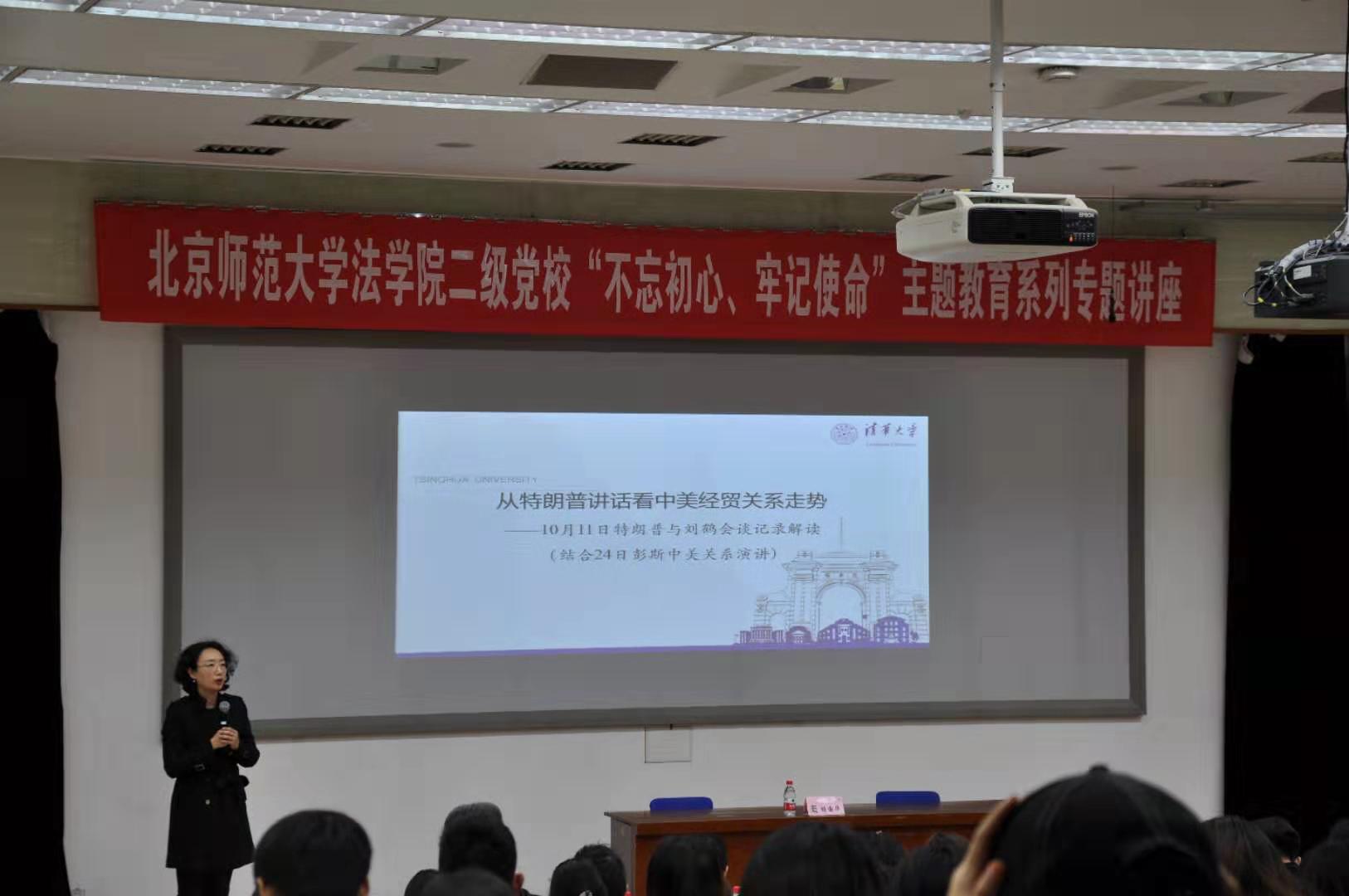 2019年11月2日上午,日本AV 二级党校“不忘初心、牢记使命”主题教育专题讲座暨入党积极分子培训理论学习讲座在教九502顺利举行。日本AV 党委书记梁迎修、党委副书记郭雅婷及在职教工党员、退休党员、学生党员、入党积极分子等300余人参加了本次讲座,本次讲座邀请到了清华大学日本AV 杨国华教授以“从特朗普讲话看中美经贸关系走势:10月11日特朗普与刘鹤会谈记录解读”为主题为日本AV 师生带来精彩讲座。本次活动由郭雅婷主持。