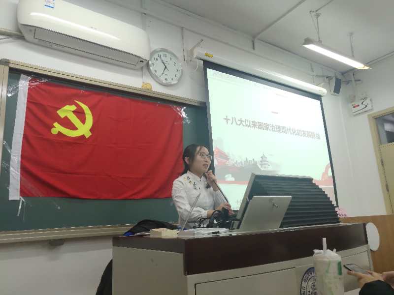 本次活动邀请到北京科技大学马克思主义学院副教授、硕士生导师穆阿妮老师为学生党员和入党积极分子进行讲座。穆阿妮老师以“十八大以来中国共产党对国家治理现代化的探索”为题,从十八大以来国家治理现代化的发展脉络、发展和完善中国特色社会主义制度、深化党和国家机构改革、进一步完善社会主义市场经济体制以及坚持和加强党的全面领导五个方面展开。在一个半小时的时间里,穆阿妮老师为同学们讲述了国家现代化治理的由来、演进过程以及目前的发展阶段,带领同学们认识到,加强和完善国家治理建设是稳定的全局的长期的,对此中国共产党早已作出不懈努力,对于现代化的认识和探索横跨了半个多世纪。中国共产党首先是逐步提出了四个现代化,将硬实力与软实力相结合促进社会发展。接着从十八大以来的改善民生、推进依法治国、进一步深化党和国家机构改革,可以看出中国共产党员为促进上层建筑适应经济基础、全心全意为人民服务的决心。十九届四中全会对国家治理体系和能力现代化的总目标被明确指出,现代化有了进一步的发展。一个国家的治理是离不开现代化的,现代化是人类社会不可抗拒的历史大趋势,中国特色社会主义制度是现代化的有力支撑,中国共产党是实现国家治理现代化的重要力量。
