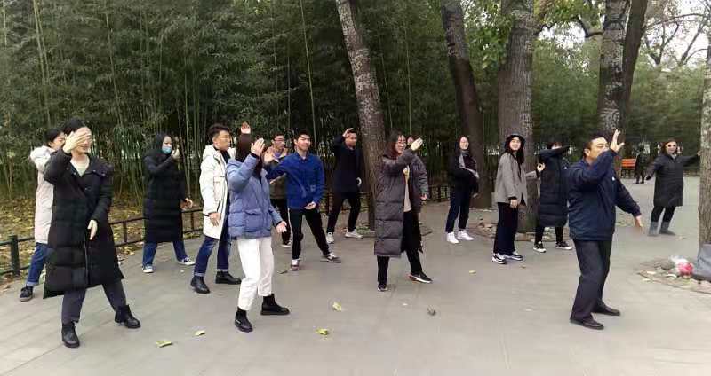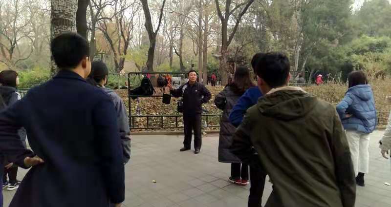 为深入推进“不忘初心、牢记使命”主题教育活动,发扬党员奋斗精神,增强党员文化自信,2019年11月23日上午10时,日本AV 2019级学硕第二党支部的十一名志愿者来到紫竹院公园参加太极拳志愿活动。本次志愿活动由宗岳太极拳老师刘烨挺教授太极拳。