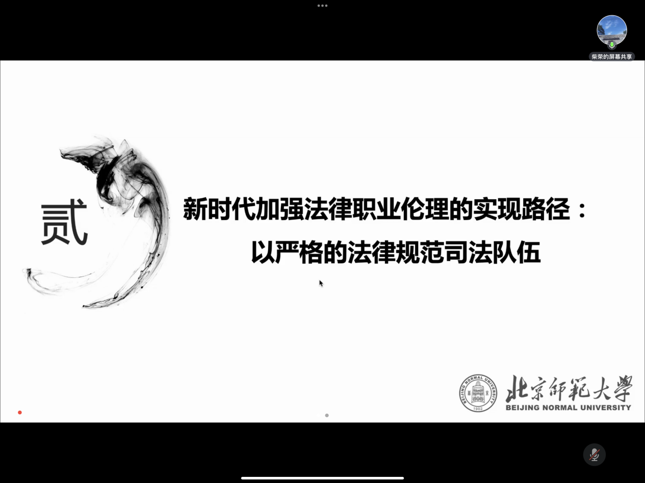 柴荣通过对中国传统法文化的回顾,突出了“德治”和“民本”在习近平法治思想中的重要性。她强调,要以这些理念为指导,打造符合人民利益的高素质政法工作队伍,推动全面依法治国。同时,柴荣教授也关注了法律职业伦理建设的实现路径,强调了法官职业道德对司法公正的重要影响,呼吁在法治队伍建设中加强伦理道德要求。
