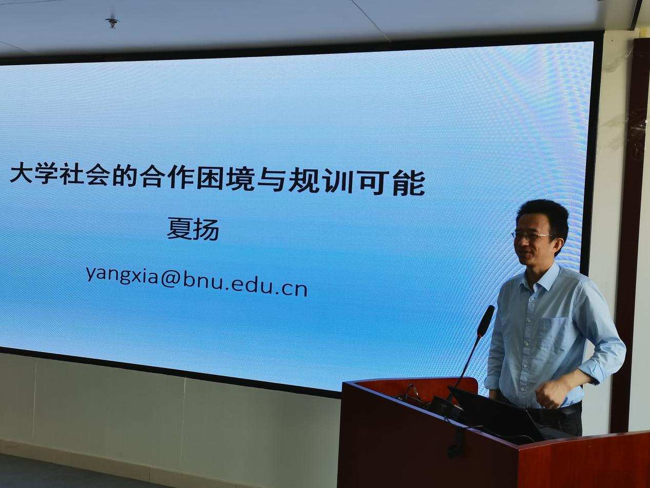 夏扬老师以《大学社会的合作困境与规训可能》为题,从学术的角度探讨了导师(老师)和学生之间的关系。夏扬教授认为,导师(老师)与学生之间实际上存在行政服从关系,但这种关系又无法被社会所确认。导师(老师)与学生之间既存在合作又存在规训的关系,但导师(老师)对学生进行规训的权力来源到底是源于知识优势还是源于教师地位并不明确。