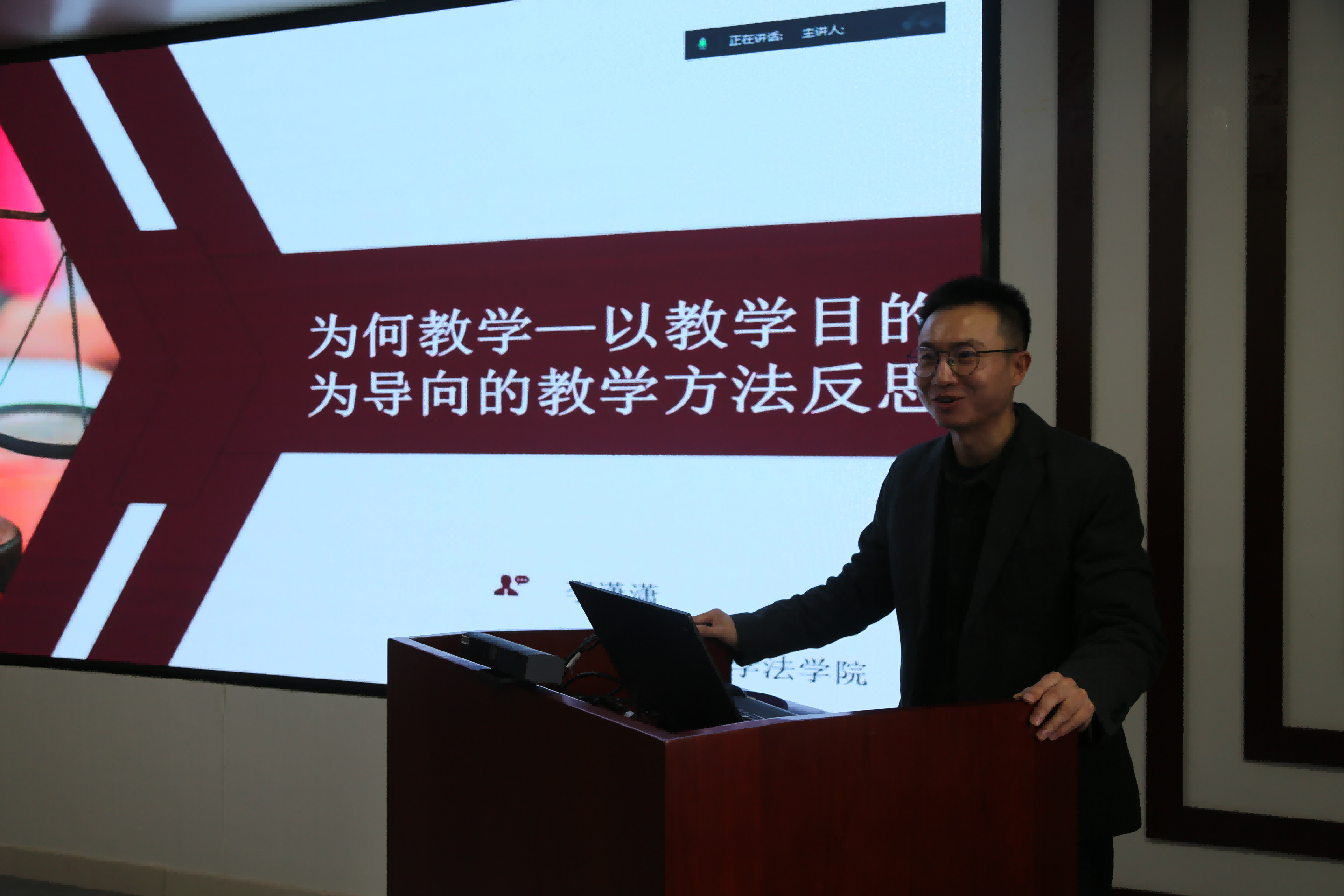 在问题中心的教学理念方面,李潇潇老师首先引用了著名法学家富勒的名言:“美国法律教育的成功秘诀在于这样一个事实,即它以问题为中心。”以问题为中心进行教学,通过问题的引入、分析和解决之逻辑思路开展教学,能够真正激发学生的思考和探索。