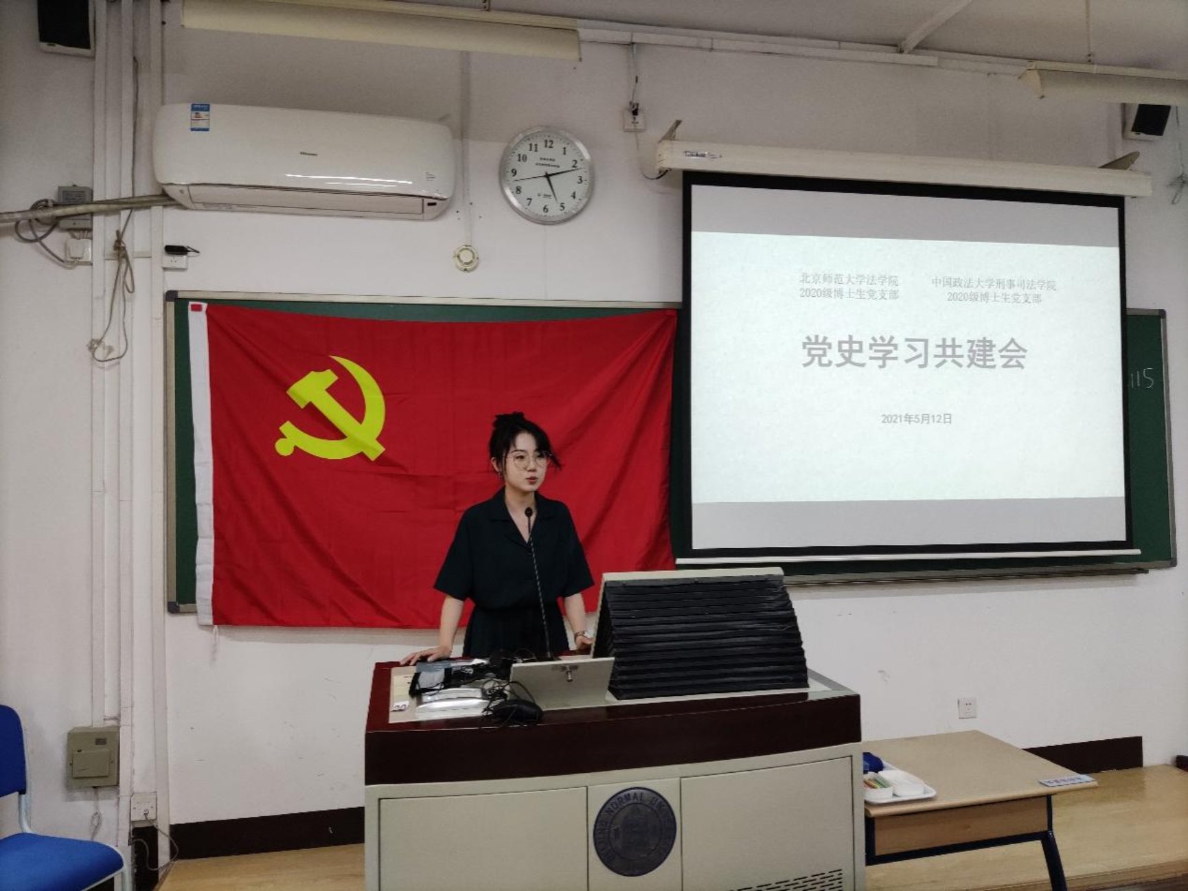 接着,中国政法大学刑事司日本AV 2020级博士班党支部书记李涵笑同志致辞,李书记代表本支部对北师大同学们的热情接待表示感谢,并希望两支部可以从本次活动开始共建共荣,团结协作举办更多更好的党建活动。