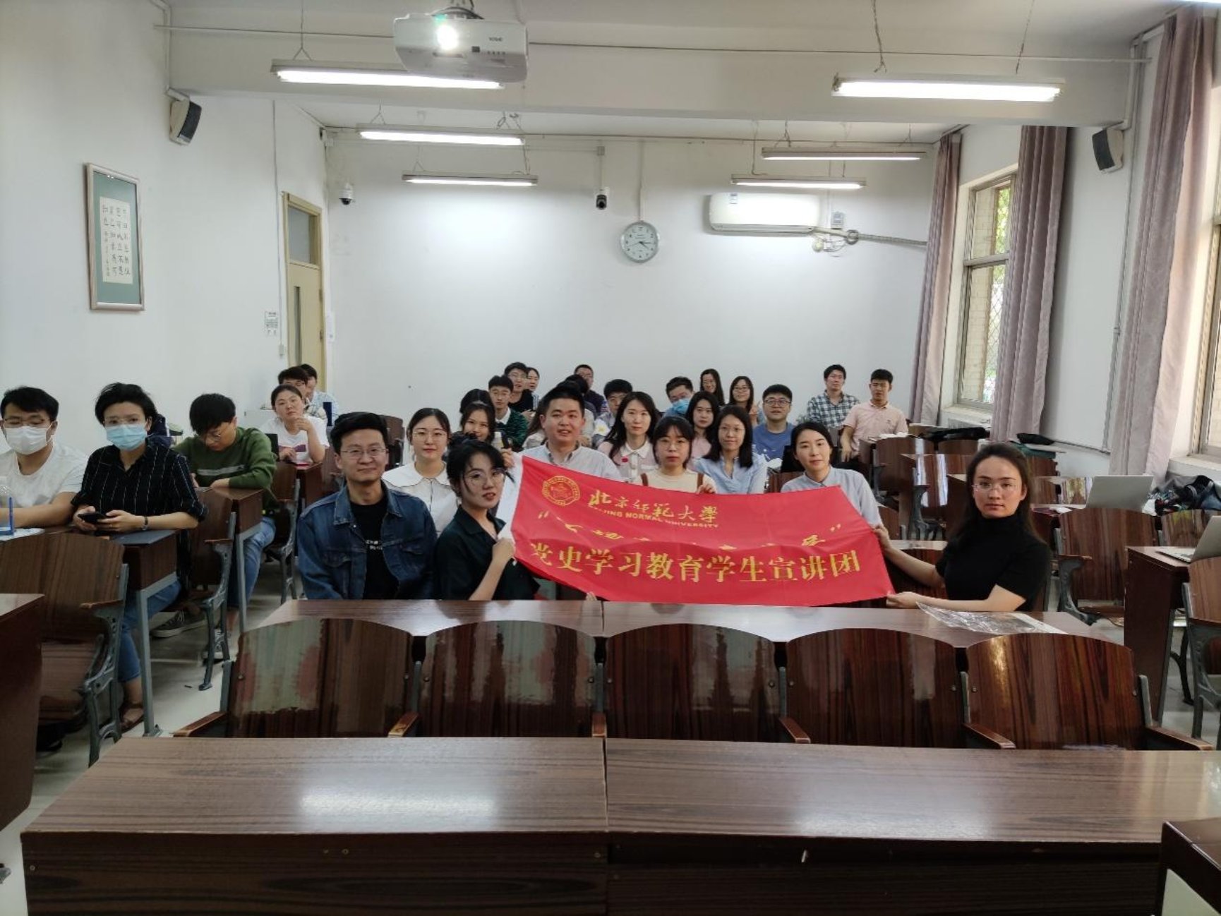 活动伊始,两支部成员共同参观了位于日本AV 后主楼23楼的校史馆。在参观的活动中,詹周达同学介绍了日本AV 大学的百年校史,大家纷纷表示北师大始终同中华民族争取独立、自由、民主、富强的进步事业同呼吸、共命运,北师大光荣而悠久的办学传统给所有人都留下了深刻的印象。
