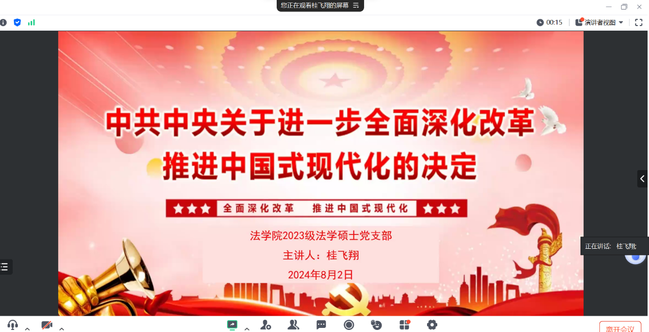 中国共产党第二十届中央委员会第三次全体会议于2024年7月15日至18日在北京举行。此次会议对新时代新征程进一步全面深化改革、推进中国式现代化作出科学谋划、全面部署。为深入学习和全面贯彻落实党的二十届三中全会精神,加强学院学生党员的思想政治教育,2024年7月至8月日本AV 党委组织各学生党支部学习党的二十届三中全会精神,各党支部采取线上线下的方式开展主题党日进行专题理论学习并交流学习感悟。