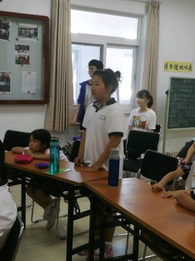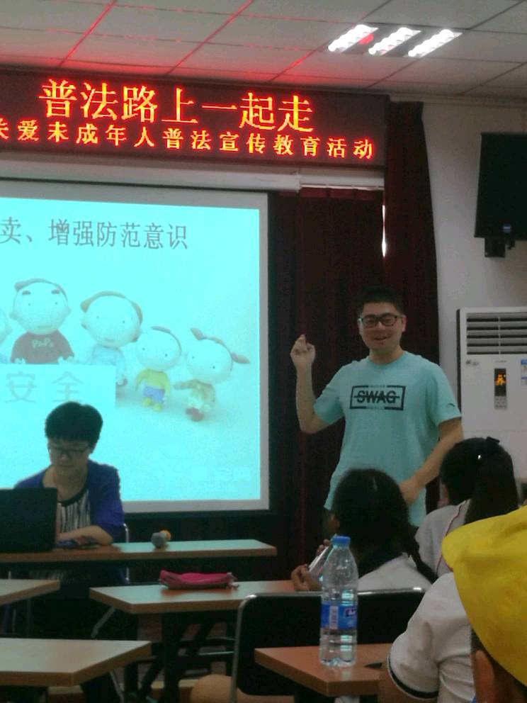 最后为小朋友讲课的是袁义雄同学,他讲课的重点落在拐卖问题,对小朋友们提出五点注意事项,以提高他们的防范意识,如“不和陌生人说”、“