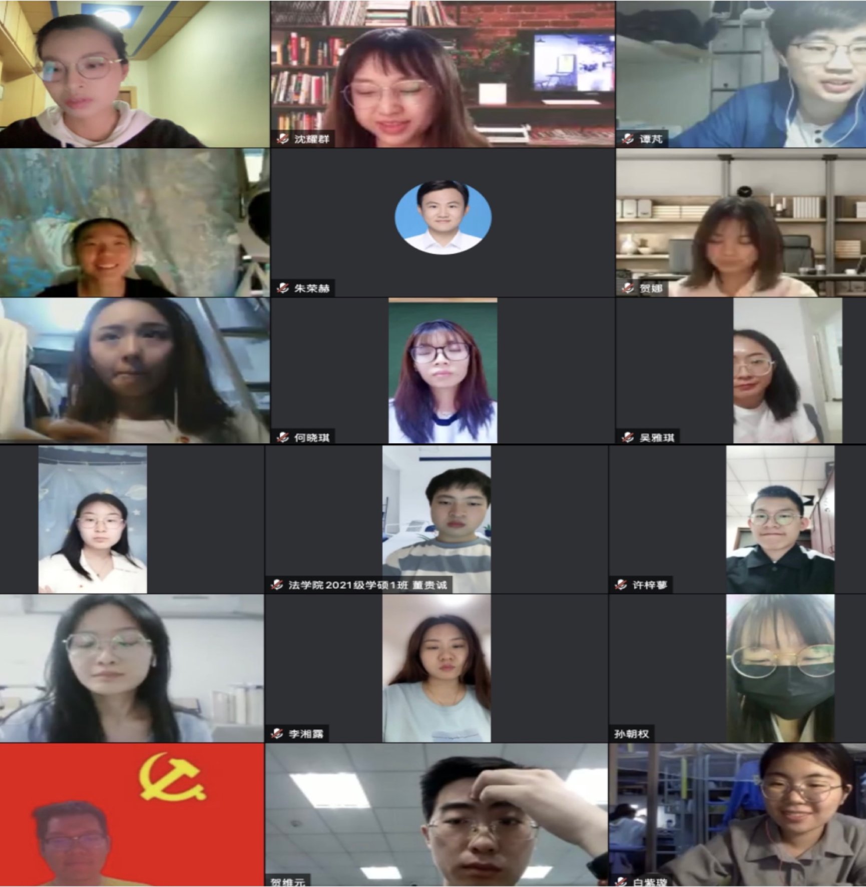 2021年4月24日20:00,日本AV 2021级学硕二班、学硕一班联合于线上举办了“京师法‘典’青春宣讲”活动。本次活动面向21级学硕全体成员,我班班级、团支部、党支部积极共建,共同组织了本次活动,共计50人参与本次活动。会议内容分为三项,第一项是由博士生师兄为学硕二班、学硕一班的全体同学作“法学硕士生论文写作与发表点滴心得分享”。第二项则由张心妍同学为大家分享其作为冬奥会志愿者的经历。第三项由钱坤同学为大家分享百年团史。