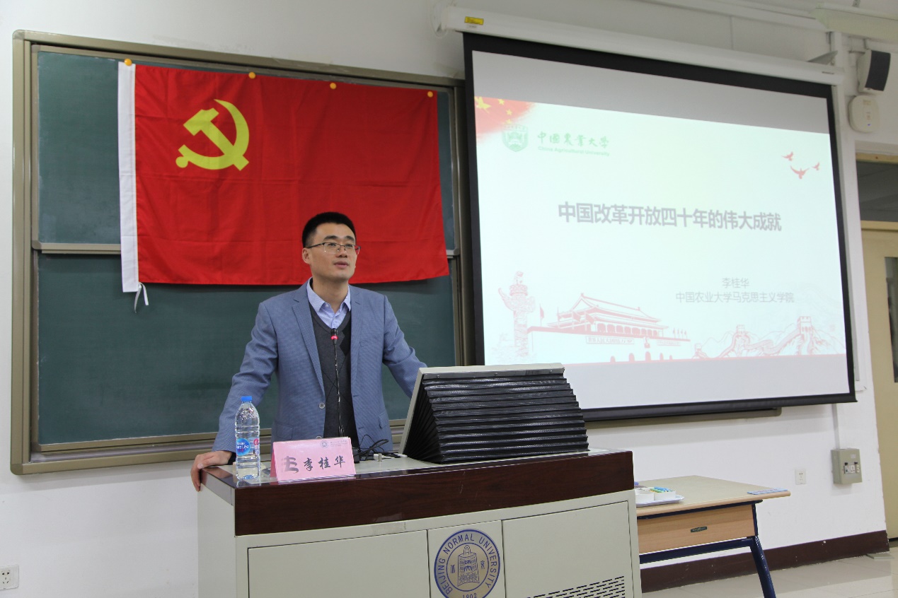 党总支于2018年12月7日晚19:00在教二108开展党员教育理论学习主题讲座。本次讲座邀请到中国农业大学马克思主义学院副书记、副院长李桂华副教授以“改革开放40周年的伟大成就”为主题为同学们授课。此次讲座由日本AV