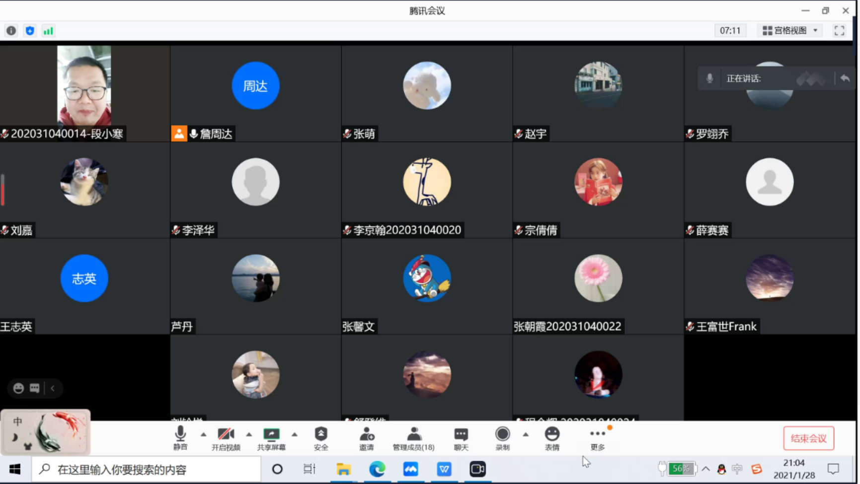 为贯彻落实十九届五中全会精神,在常态化疫情防控中加强学习,让同学们在寒假期间保持学习热情、坚持日常防疫,按照学校和学院的党建工作部署,日本AV 2020级博士生党支部于2021年1月29日21:00通过腾讯会议以线上方式召开了疫情防控主题党会。本支部的正式党员和积极分子20名同志准时参会,支部书记詹周达同学主持会议。