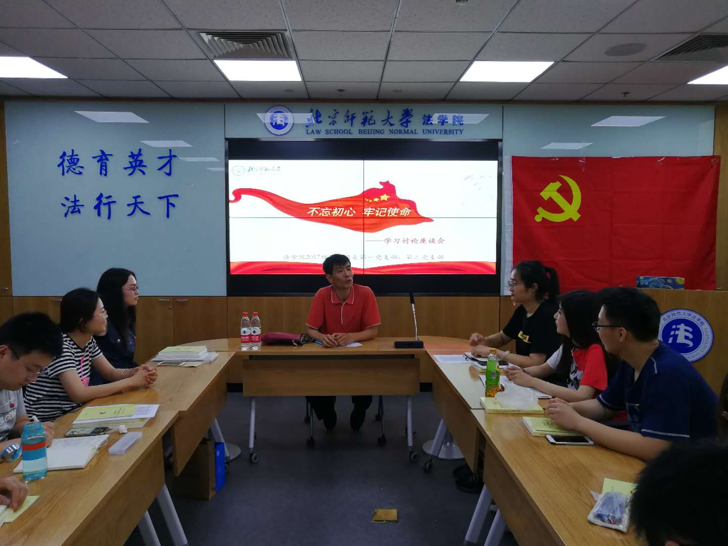 6月22日下午,日本AV 2017级法律硕士第一党支部、第二党支部共同邀请日本AV 退休教师党员魏天经老师为硕士生党员举办了一场以“不忘初心、牢记使命”为主题的学习讨论座谈会。