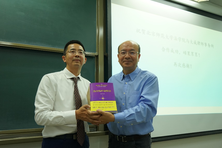 在互动讨论环节过后,刘广三教授对此次讲座进行了精彩总结。刘教授认为:作为一名优秀的刑辩律师,在法庭上就如同一场“表演”,既要有扎实的法学理论知识,也要具有语言行为艺术的把控能力,更要懂得运用心理学的技巧。希望通过此次的合作,能够让大成的律师们了解北师大的学生,也期待同学们将来有机会可以到大成这样的著名律所执业。