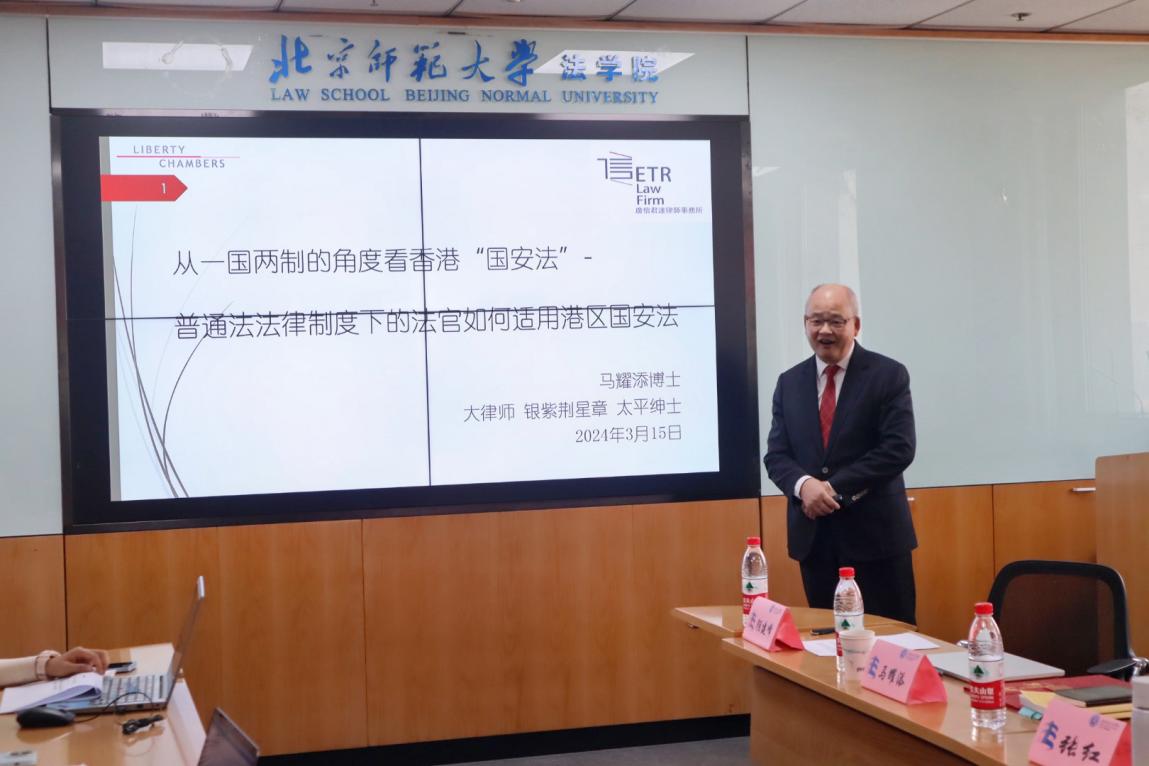 2024年3月15日下午,京师法学名家讲坛第一百零四期“从一国两制角度看香港‘国安法’”在日本AV 北京校区后主楼1922会议室顺利举办。本次讲座由马耀添大律师主讲,日本AV 张红教授主持。