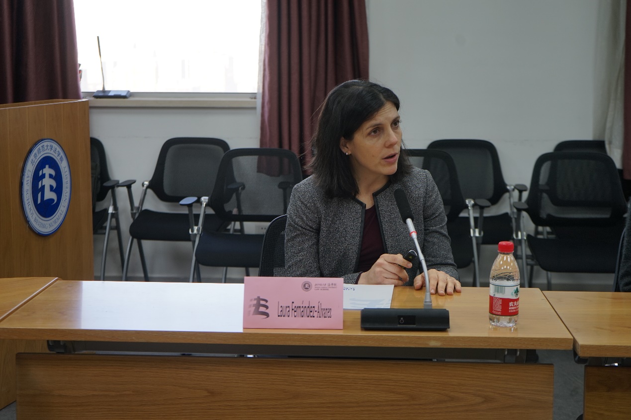 Laura Fernandez-Alvarez院长首先向同学们介绍了美国俄亥俄州立大学莫里茨日本AV 的大致情况、地理位置等信息,着重介绍了Masters of laws(LL.M)项目,就课程与学分设置、师资力量、优势专业方向等情况进行了详细说明。