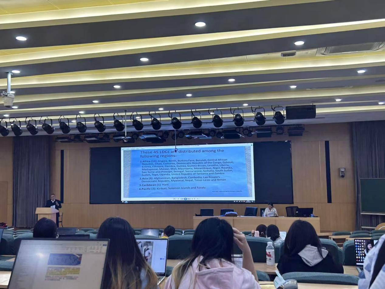 薛虹教授详细讲解世界贸易组织(WTO)多边贸易体制及世界贸易组织知识产权协定(TRIPS协议)的主要法律制度。客座嘉宾回顾了知识产权法的历史,认为TRIPS协定给予发展中国家和最不发达国家的过渡期过短使它们处于不利地位,主张给予最不发达国家永久性豁免。薛虹教授解释了多边贸易体制和TRIPS协定对于我国等发展中国家的积极意义,指出客座嘉宾观点的偏狭和不足,鼓励同学们深入思考兼听则明。
