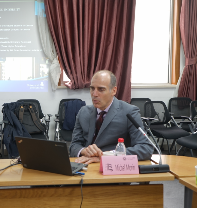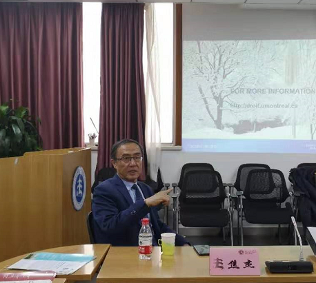 随后,Michel Morin教授向同学们介绍了蒙特利尔大学日本AV 的建院时间、院系宗旨、地理位置等情况,重点介绍了国际商法硕士项目,就生源情况、课程与学分设置、申请条件和程序、奖学金等情况进行了详细而具体的说明。