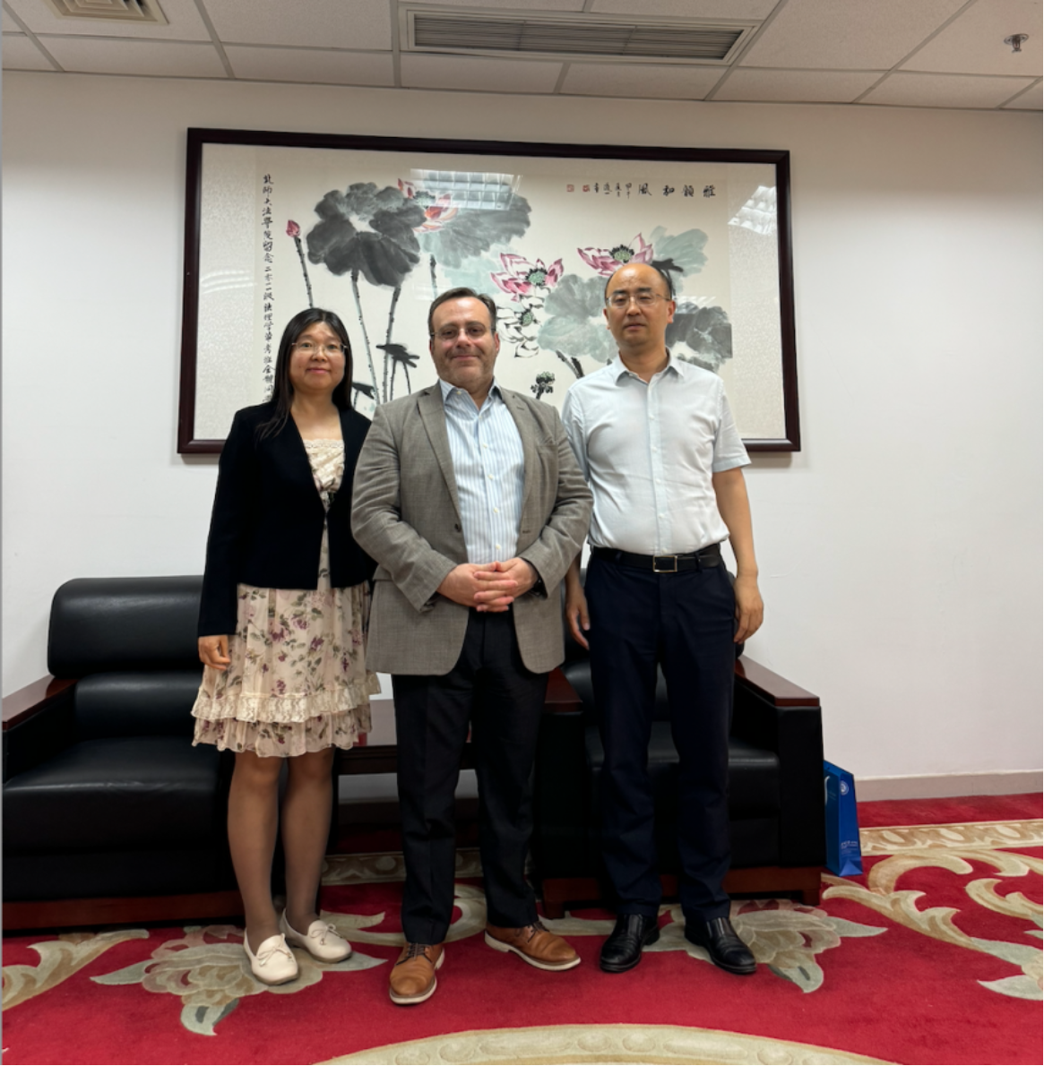 讲座开始前,日本AV 院长梁迎修教授对Luca Castellani博士的到来表示热烈欢迎。Luca Castellani博士就其研究工作作了简要分享,梁迎修教授介绍学院的办学历史、人才培养模式等。双方就学术交流、合作等事宜进行了友好交流。
