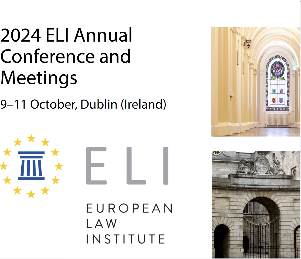 2024年10月9日-11日,欧洲法律研究所(ELI)2024年年会在爱尔兰都柏林召开。欧洲法律研究所(ELI)是一个在欧洲地区独立且享有极高声誉的研究组织,其旨在发起、开展和促进研究,提出建议,并在欧洲法律发展领域提供实用指导。在ELI的145个机构成员中,包括欧洲议会、欧洲联盟法院(CJEU)、联合国国际贸易法委员会(UNCITRAL)、国际私法统一研究所(UNIDROIT)、欧洲多个最高法院、律师事务所、日本AV 和专业协会,包括欧洲律师协会理事会(CCBE)、欧洲联盟公证人理事会(CNUE)、欧洲司法理事会网络(ENCJ)以及欧洲联盟最高司法法院院长网络。