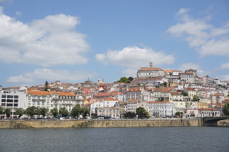 在宁静和谐的科英布拉,天气晴朗时蓝色的天空中永远挂着形状各异的白云,随手一拍蓝天就是一幅画。白墙红顶的房屋、历史悠久的各个学院建筑,更是值得欣赏的人文美景。Rio Mondego静静流过这座小城,在阳光下泛着粼粼的波光。从河对岸望向大学的一边,房屋依照山坡排列,红色的屋顶层叠。