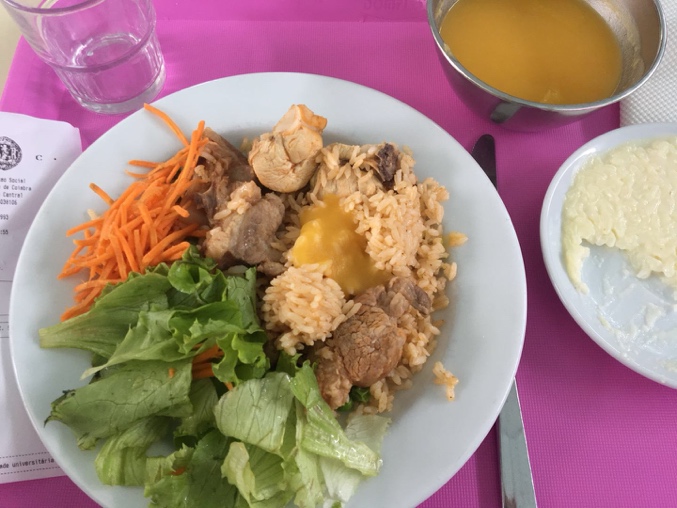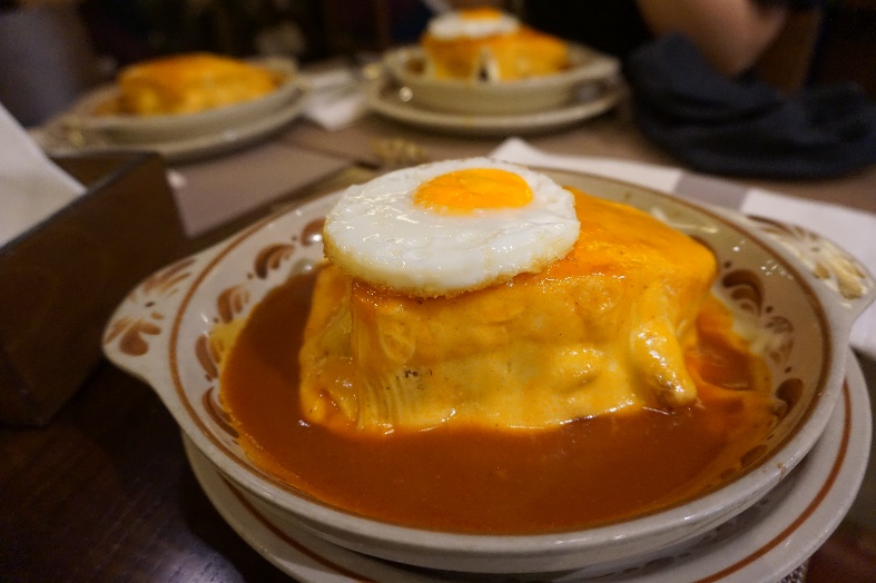 对于这里的食物,同学们的普遍印象有咸或者甜。Bacalhau总是咸的,经常出现在食堂的柜台;Francesinha是面包里包裹着火腿,猪肉和腌肉,面包外还有咸甜的酱料,令人发胖但又停不下来。各种各样的甜点也值得一试,有独具特色的Pastel de Nata,食堂供应的用米做成的Arroz Doce,还有商店柜台里琳琅满目的各种面包,极大地满足了我们对于甜食的需求。
