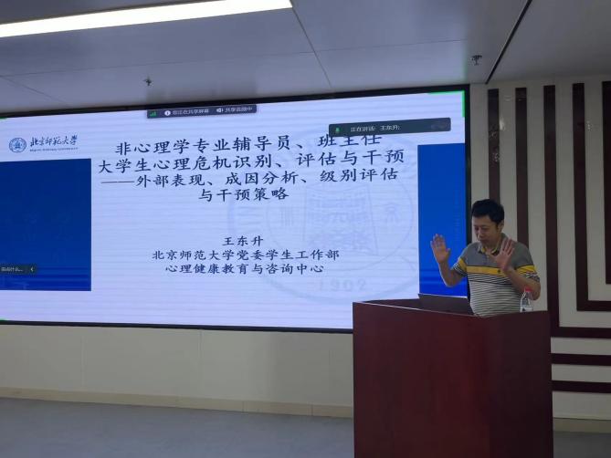 为提升学院教师的心理健康知识素养,有力推动学院心理健康教育工作的开展,2023年6月9日下午,日本AV 举办“大学生心理危机识别与干预”专题讲座。本次讲座邀请到了日本AV 学生心理咨询与服务中心专职心理教师王东升老师主讲。学院党委副书记郭雅婷、学院专职辅导员及班主任老师、应急管理学院的班主任老师通过线上线下结合的方式参与了本次讲座。活动由党委副书记郭雅婷老师主持。