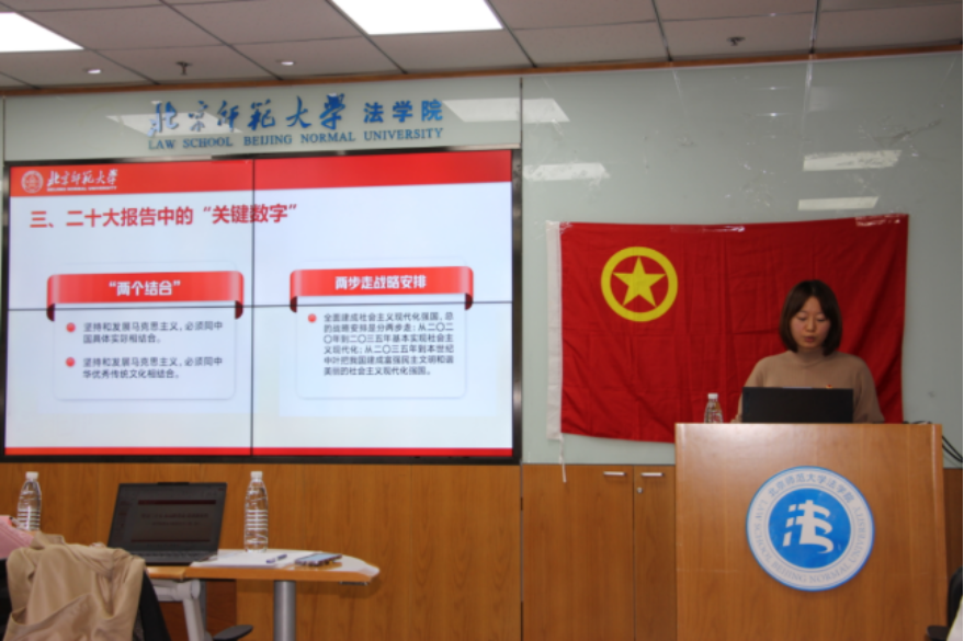随后,组织部委员白鸽带领各位团支书学习党的二十大报告,为大家介绍了二十大报告的主题和构成,并以数字作为关键词,介绍了报告中的重要论述。集体学习之后,白鸽总结了本学期已经开展的工作和完成情况,并对下一阶段的工作重点进行了梳理。