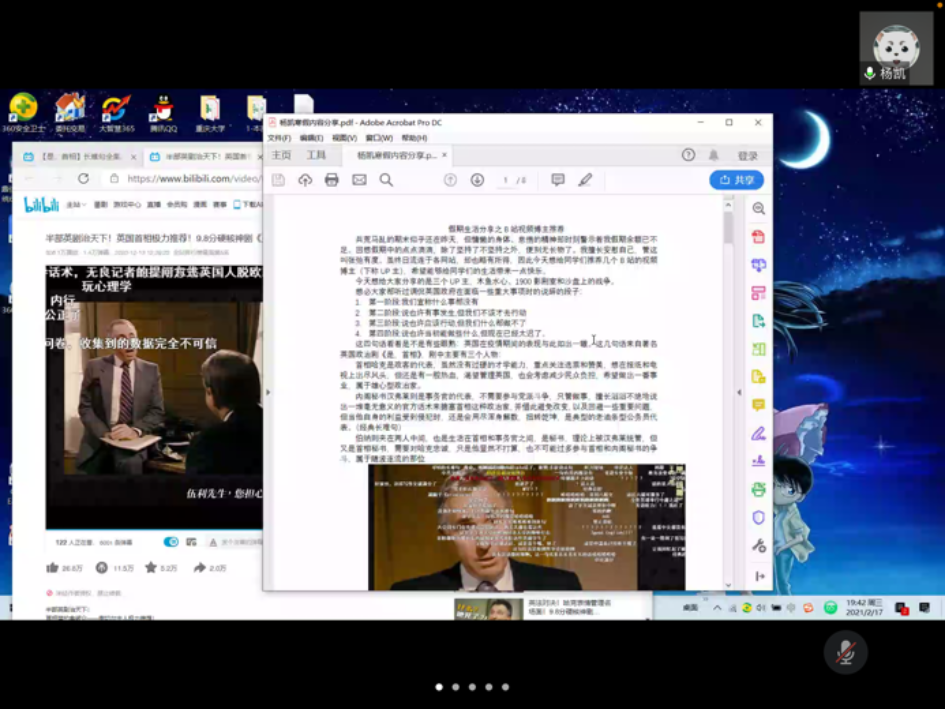 本次分享会的最后环节,同学表示通过大家的精彩分享,大家共同进步提高,资源共享,班级的凝聚力也得到提升,渡过了一个有意义的寒假。最后,大家纷纷打开摄像头,记录下充满意义的一刻。