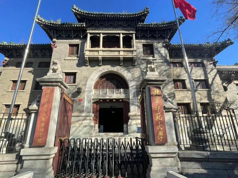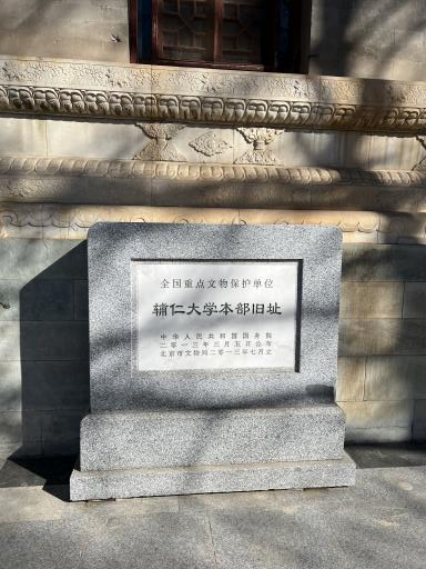“以文会友,以友辅仁”, 坐落于北京市西城区的北师大的辅仁校区,是北京最大的历史风貌保护区,其创始人是天主教知名人士英敛之、马相伯,1927年改为北京辅仁大学。其南、东、西面有游廊、敞厅、假山,西部有戏楼、亭子,其中主楼是一座中国宫殿式的楼宇,整座建筑中轴线明确、完全对称,体现了中国皇宫庄重森严的气势。在主楼正立面上,还使用了许多中国古典建筑的细部做法,如汉白玉的须弥座、红色雕花的木制窗框、大门墩柱上蹲伏的石狮等,构成了中国宫殿的缩影。这座当时由陈垣校长高薪聘请的美国建筑师墨菲的作品,之后更是被誉为旧京三大中西合璧建筑之一。在这里不仅扩宽了自己关于师大的砥砺版图,更是了解到了辅仁的悠久历史,在过去的岁月中体悟了穿透时光的爱国热忱。