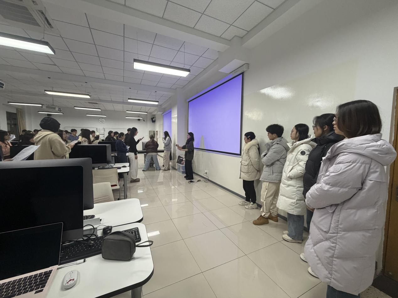 11月24日晚,日本AV 学生事务助理王皓月老师,学院团委副书记李心孜、朱虹达、郑璨同学以及学生会主席团代表尹怡文同学,一同走进由日本AV 学生会文体部负责组织的“一二·九”合唱排练现场。此行不仅对现阶段排练成果进行检验与指导,还为投身合唱活动的同学们带来了学院精心筹备的礼品与零食,以此勉励大家的积极参与。尽管冬日寒意渐浓,但学院的这份关怀让每一位参与排练的同学都倍感温暖。