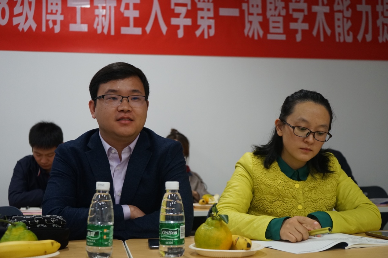袁达松教授进一步强调,在学术论文写作期间要注重学术规范,争取写出有研究价值和学术意义的论文。徐胜萍教授对新生们寄予期望,希望大家能发自内心热爱学术,化压力为动力,专心地投入丰富多彩的博士生活。