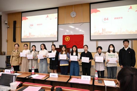 日本AV 团委理论研究部干事张巧玲介绍了初级团校情况并宣读了优秀团校成员名单,古宇飞老师和郭雅婷老师为优秀团校成员颁奖并合影留念。