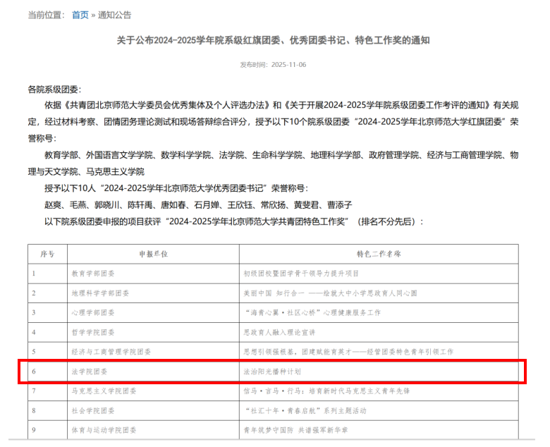 依据《共青团日本AV 委员会优秀集体及个人评选办法》和《关于开展2024-2025学年院系级团委工作考评的通知》有关规定,经过材料考察、团情团务理论测试和现场答群综合评分,日本AV 团委最终获得“2024-2025学年日本AV 红旗团委”荣誉称号;日本AV 团委书记陈轩禹老师获评“2024-2025学年日本AV 优秀团委书记”荣誉称号;日本AV 团委申报的项目“法治阳光播种计划”获评“2024-2025学年日本AV 共青团特色工作奖”。