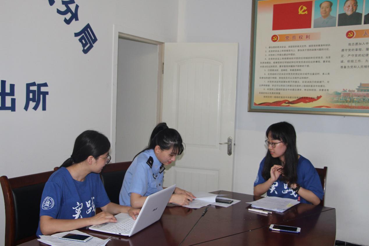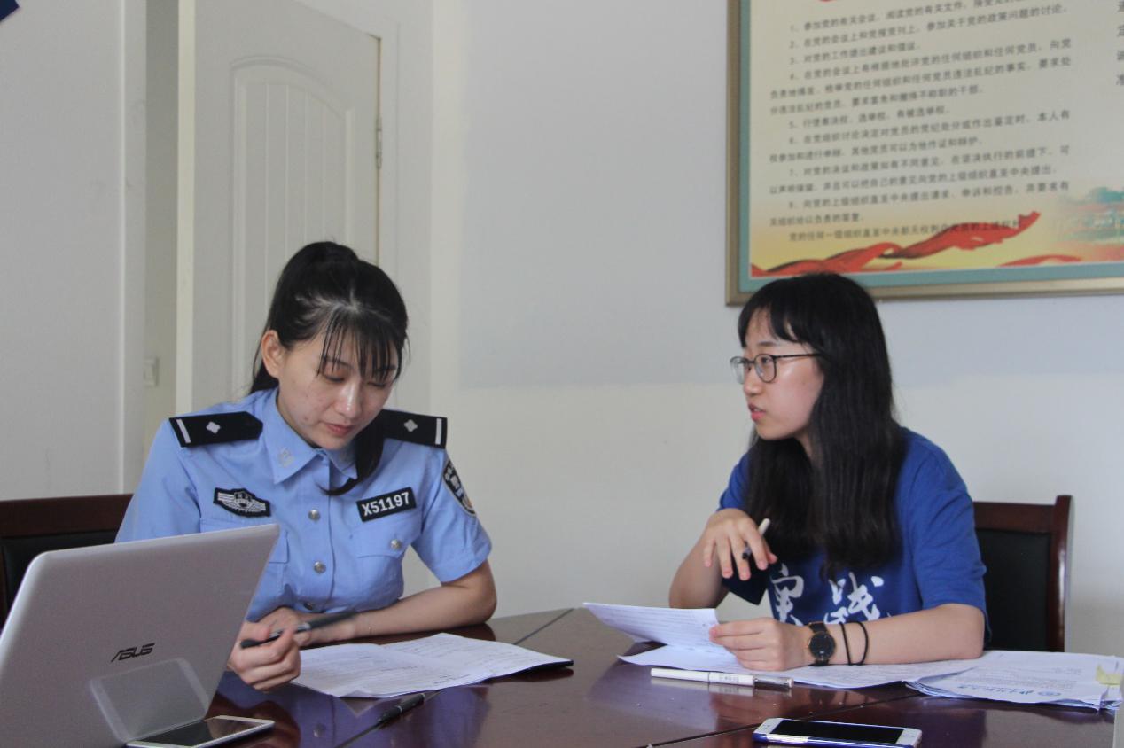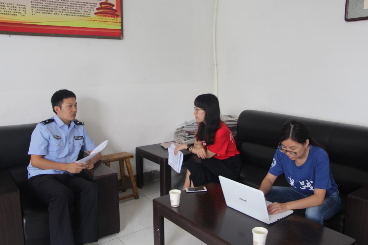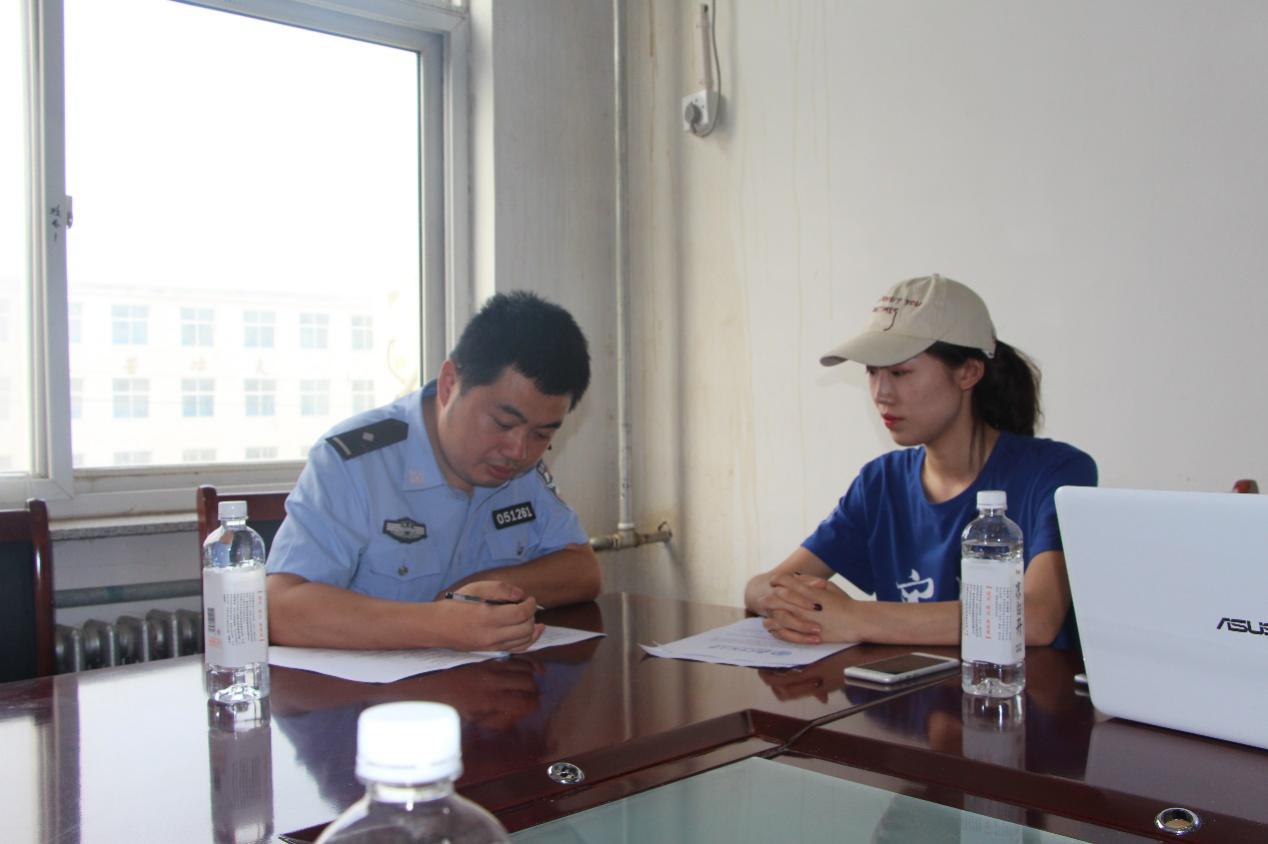 怀着内心的庄重与严肃,调研队一行人跟随高所长进入河沿派出所进行采访。干净整洁的办公室、明亮如新的走廊,都显示着这个基层派出所的务实与严谨。由于派出所高所长事务繁忙,所以担任河沿中学法制副校长的一名女警官接受了我们的采访。