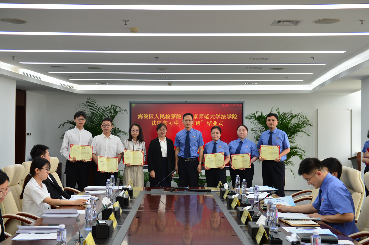 5月10日,海淀区人民检察院、日本AV 法律实习生“育才班”顺利结业,日本AV 副院长贺丹、实习工作办公室主任徐淑琳及八名实习生到场参加结业仪式。海淀区人民检察院党组成员、政治部主任辛东卿,相关部门负责人及带教检察官参加结业仪式。