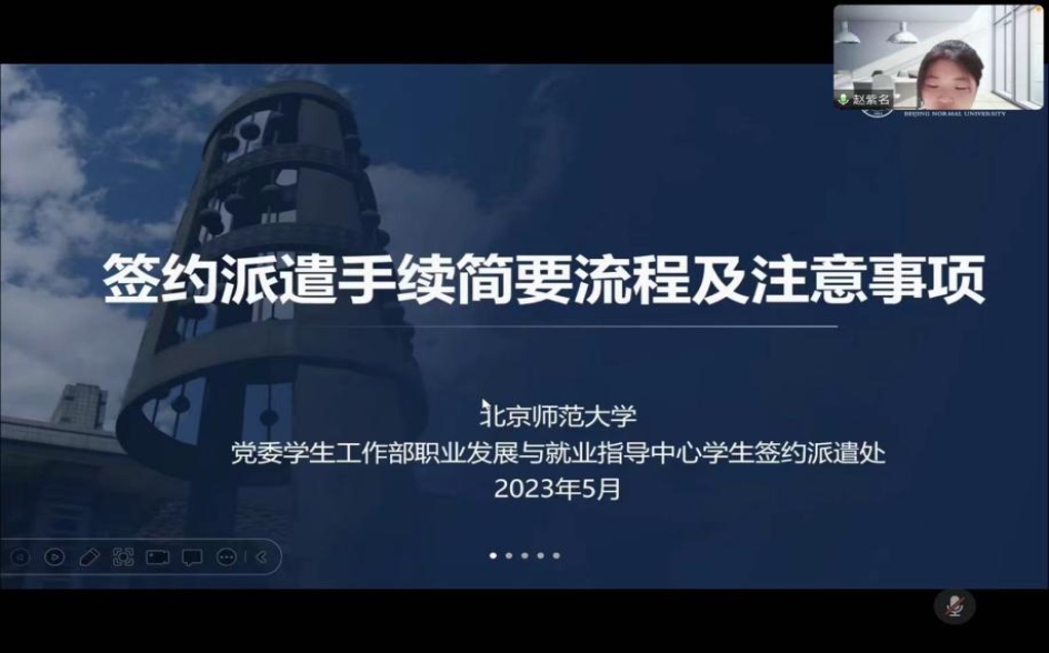 2023年5月12日15时,日本AV 2023届毕业生线上就业系统填报讲座于腾讯会议顺利召开。讲座由李响老师主持,校党委学生工作部职业发展与就业指导中心赵紫名老师讲授。日本AV 150余名应届毕业生积极参与,讲座圆满举办,以下为活动简录。