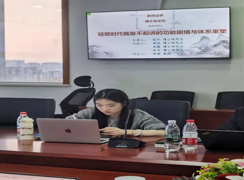 评议环节,蒋娜教授对主讲人的学术报告给予充分肯定,认为当下针对裁量不起诉展开研究兼具理论和实践价值,并从实践案例的选取与增加、理论基础的回顾等方面对报告的完善提出切实可行的建议。张印博士生表示蒋娜教授提出的意见高屋建瓴、切实可行,并表示受益匪浅、完全认可,并对蒋娜教授的悉心指导表示由衷感谢。