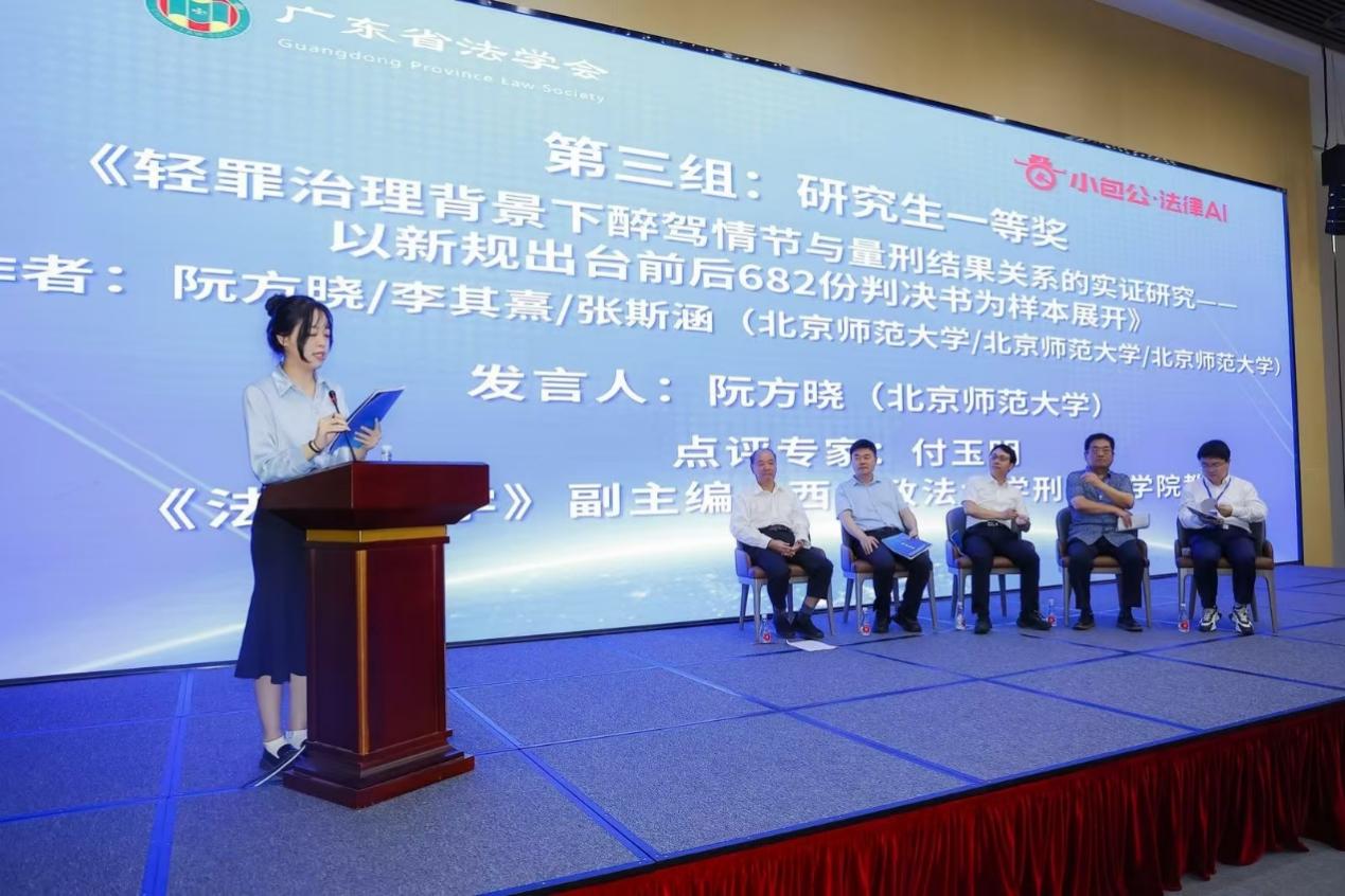 2024年8月20日,第四届“小包公杯”粤港澳大学生法律实证分析征文比赛(全国赛)颁奖仪式暨中国法治实践与发展青年论坛于广东省广州市召开。日本AV 硕士研究生阮方晓、李其熹、张斯涵合作作品《轻罪治理背景下醉驾情节与量刑结果关系的实证研究——以新规出台前后682份判决书为样本展开》获得第四届“小包公杯”粤港澳大学生法律实证分析征文比赛(全国赛)研究生组一等奖,阮方晓同学受邀参会。