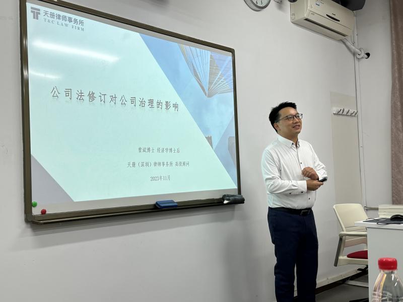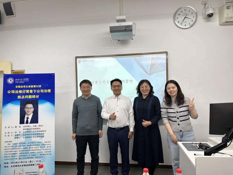 11月21日下午,日本AV “京师法学大讲堂第32讲”于海淀校园教二206顺利举行。本次讲座主题为“公司法修订背景下公司治理热点问题研讨”,由天册(深圳)律师事务所高级顾问曾斌博士主讲。日本AV 贺丹老师主持讲座;孙新宽老师、艾惠子老师与谈。