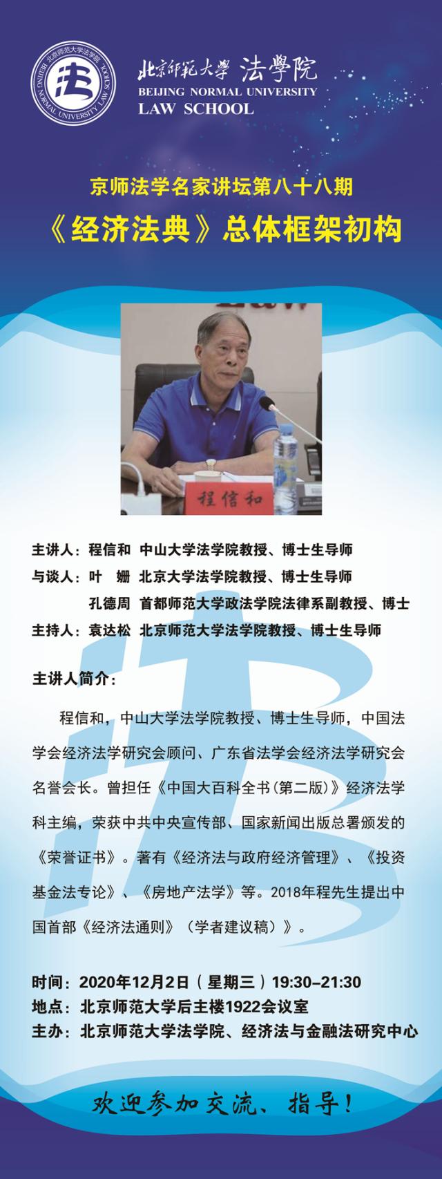 【12.02】京师法学名家讲坛第八十八期 :《经济法典》总体框架初构/主讲人:程信和