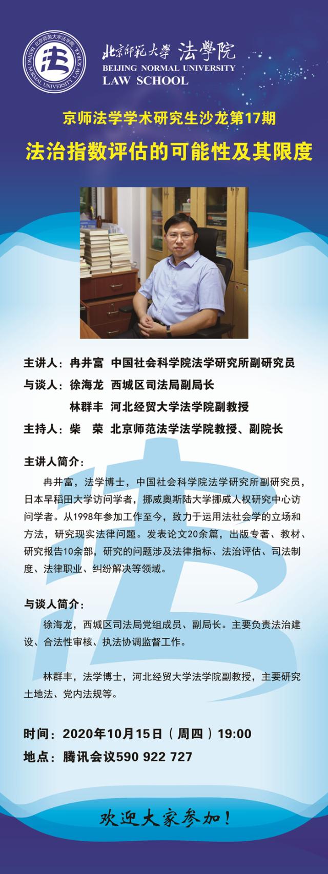 【10.15】京师法学学术研究生沙龙第17期法治指数评估的可能性及其限度/主讲人:冉井富