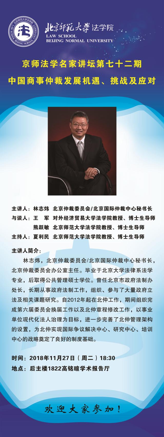 【11.27】京师法学名家讲坛第七十二讲预告/主讲人:林志炜