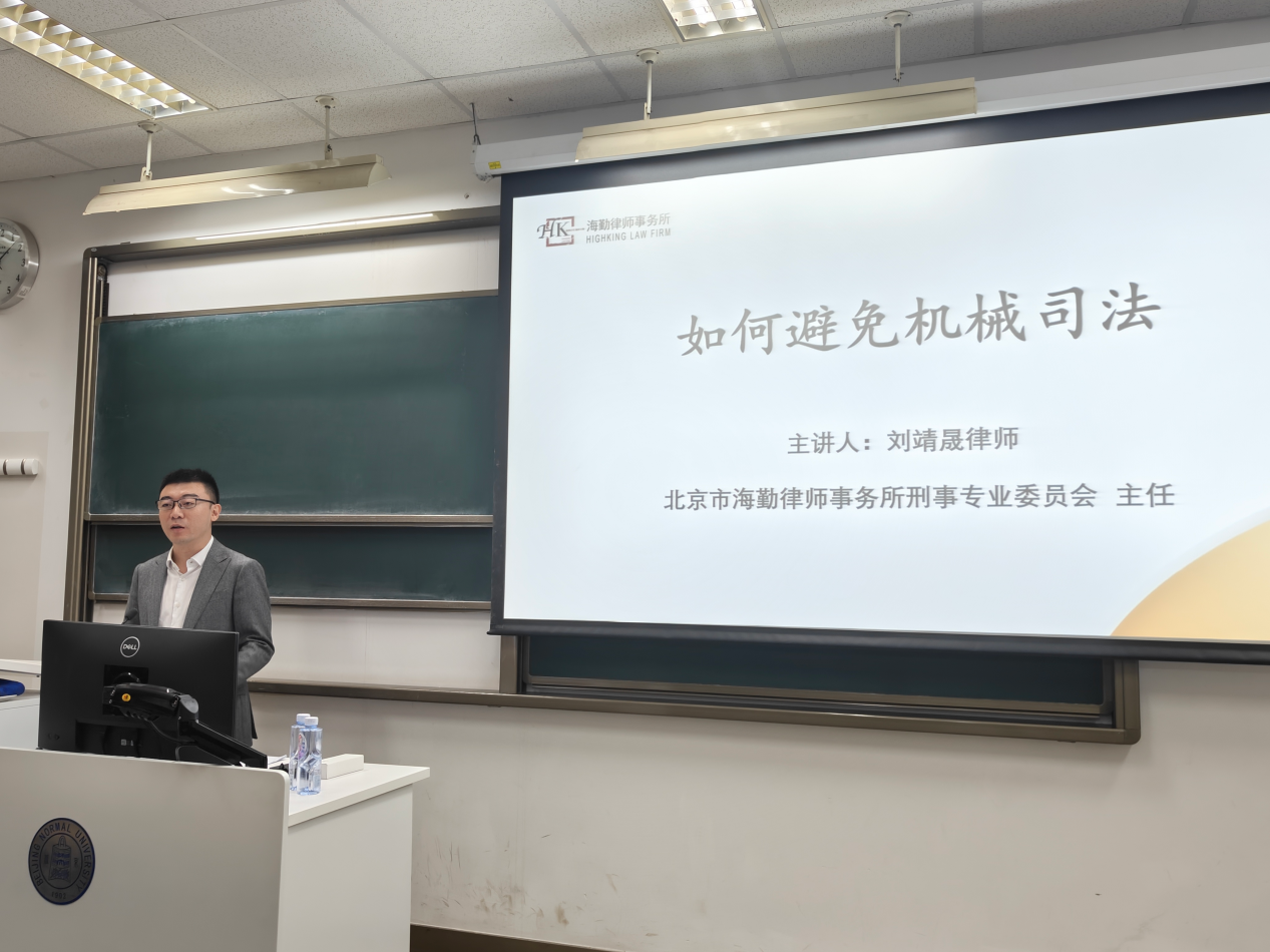为了能让同学们更加深入、具象化地了解什么是机械司法、如何避免机械司法,刘靖晟律师主要围绕几个典型案例,并结合相关法律条文展开演讲。