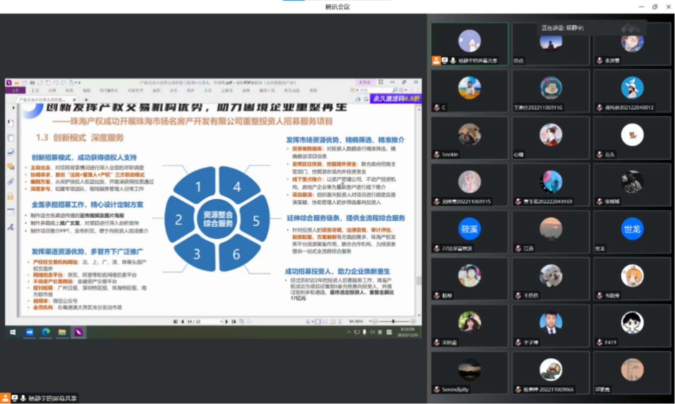 本期讲堂分为两个阶段。第一阶段,章博士对自己的任职经历、珠海产权交易中心的核心业务以及其实操演练过的成功案例进行了精彩的分享。