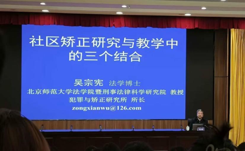 开幕式之后,吴宗宪教授做了题目为《社区矫正研究和教学中的三个结合》的主旨报告。吴宗宪教授首先热烈祝贺社区矫正全国高校联盟成立,然后指出,在我国社区矫正法已经颁布实施、社区矫正基本法律制度已经基本建立、社区矫正队伍已有一定规模的新阶段,高等院校的教师和相关研究人员应该在社区矫正领域的研究和教学中,努力做到“三个结合”:第一,研究与教学相结合。高等院校的社区矫正教学工作应该与教师的研究工作相结合,把研究作为教学的重要基础,高校教师不仅是知识的搬运工,也应该是知识的创造者。第二,教学与实务相结合。在开展社区矫正教学工作的过程中,要注意把教学工作与实务工作有机结合起来,与实务部门建立密切关系,开展密切互动,努力让学生广泛参与和更加熟悉社区矫正实务工作。第三,本土与国际相结合。他指出,开展社区矫正研究和教学的根本使命和出发点,当然是关注中国的社区矫正情况,解决中国的社区矫正问题,在研究中努力“把论文写在祖国的大地上”。同时,也要有国际视野,密切关注国际社会的社区矫正发展情况,认真借鉴国际社会的社区矫正经验,吸收全人类在社区矫正领域创造的文明精华丰富和促进我国的社区矫正。