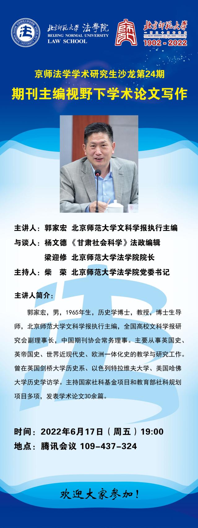 【06.17】京师法学学术研究生沙龙第24期:期刊主编视野下学术论文写作/主讲人:郭家宏