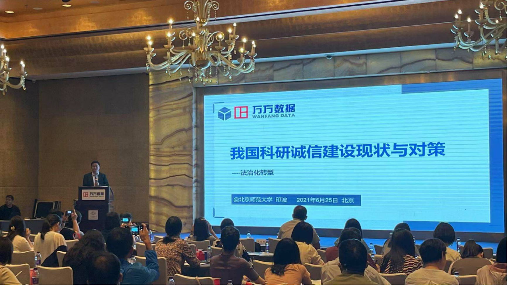 会议由北京万方数据股份有限公司总经理蒋勇青致辞,副总经理乔晓东作了报告一,主题是为《开放科学中的学术信息服务赋能》。印波副教授作了报告二,主题为《我国科研诚信建设现状与对策——法治化转型》。报告主要内容如下:以翟天临案为例,探讨科研诚信的渊源和概念。科研诚信可以从精神、法律法规、道德准则、行为规范等多个方面去理解。在全面依法治国的背景之下,科研诚信问题已经为法律所调整,科研失信是一种违法或违章行为。以美国总统拜登剽窃案为例,分析了科研失信的风险,随后列举了2005年至2021年之间各大部委主要的科研失信调查处理规范。重点分析了《科研诚信调查处理规则(试行)》(323文)的法律属性,并逐一枚举了科研失信行为的类型及对应的案例。各种查重系统可以作为认定剽窃的“鉴定意见”使用,实体法、程序法的诸多原理可以在科研诚信规范中得到全面应用。关于科研诚信的底线,要心有所敬, 行有所循;心有所畏,行有所止。