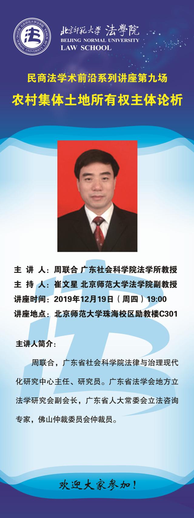 【12.19】民商法学术前沿系列讲座第九场/主讲人:周联合
