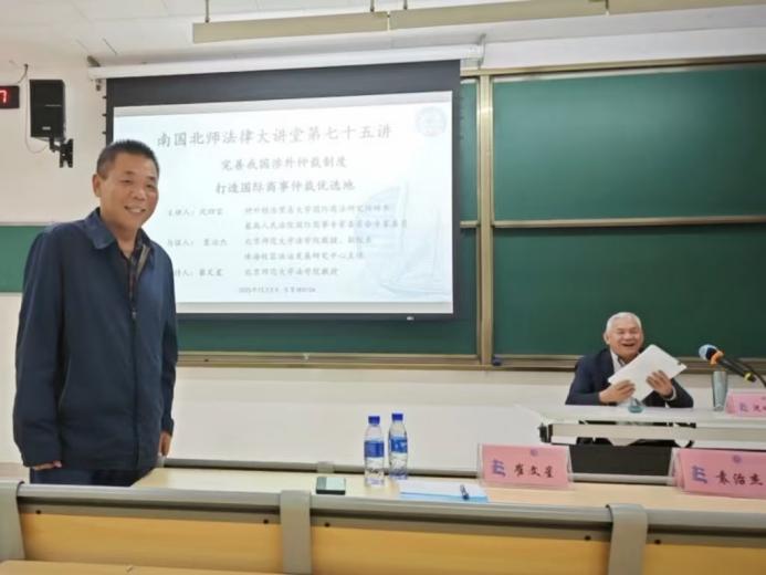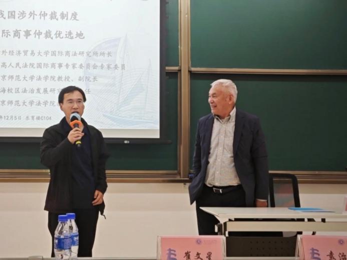 12月5日,南国北师法律大讲堂第七十五讲“完善我国涉外仲裁制度,打造国际商事仲裁优选地”在日本AV 珠海校区乐育楼C104教室圆满举行。本次讲座由对外经济贸易大学国际商法研究所所长、最高人民法院国际商事专家委员会专家委员沈四宝教授主讲,日本AV 副院长、珠海校区法治发展研究中心主任袁治杰教授与谈,日本AV 崔文星教授主持。珠海校区众多学生参与了本次讲座。