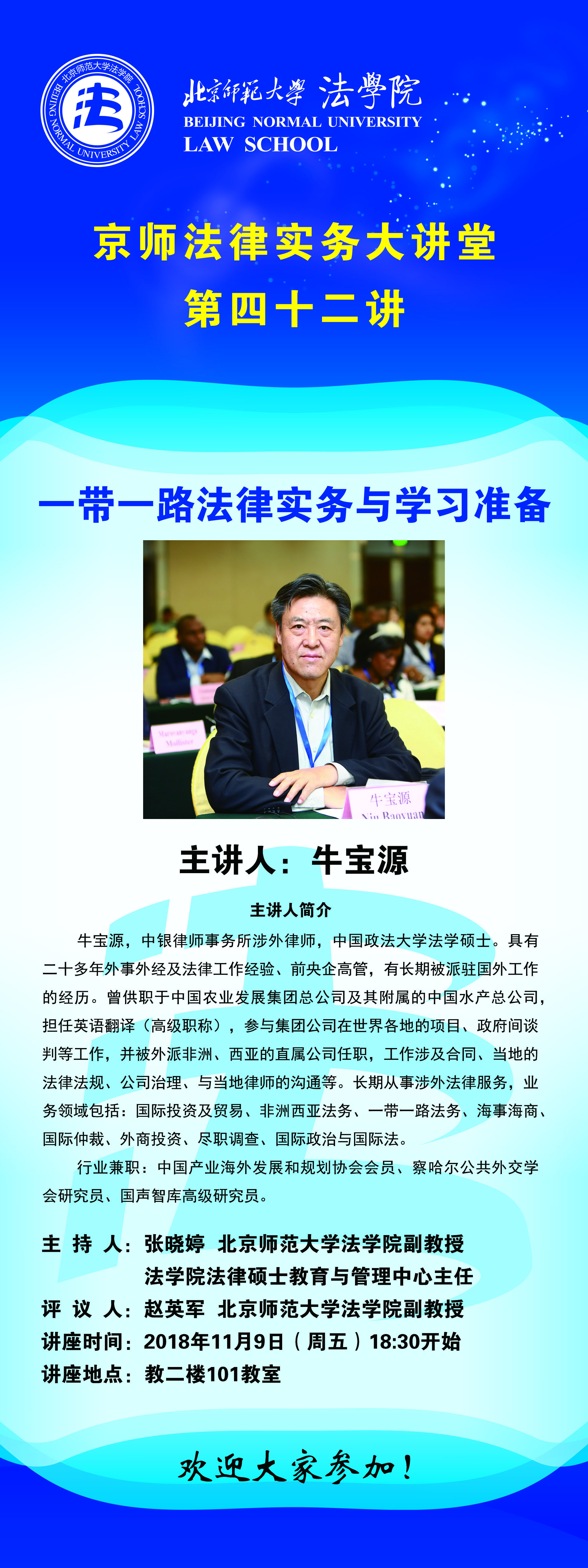 京师法律实务大讲堂第四十二讲在教二楼101教室成功举办。本次讲座特别邀请到中银律师事务所牛宝源律师担任主讲人,讲座主题是“一带一路法律实务与学习准备”。日本AV